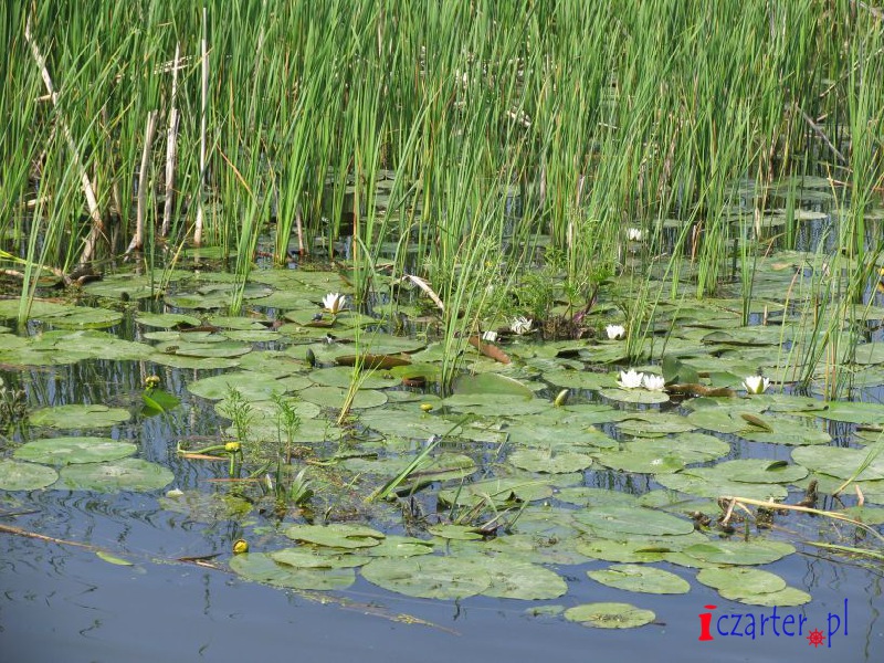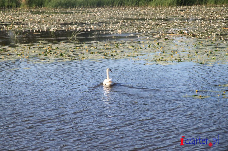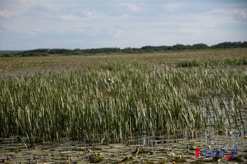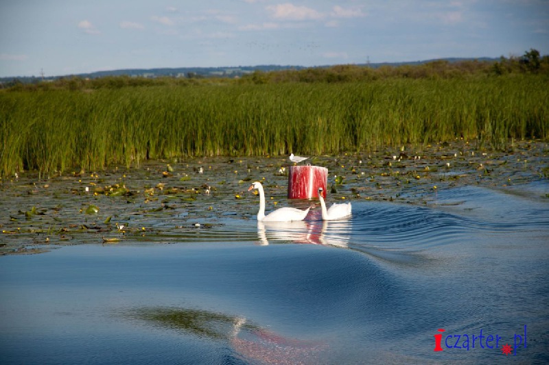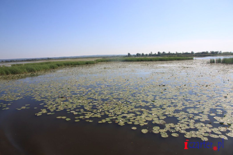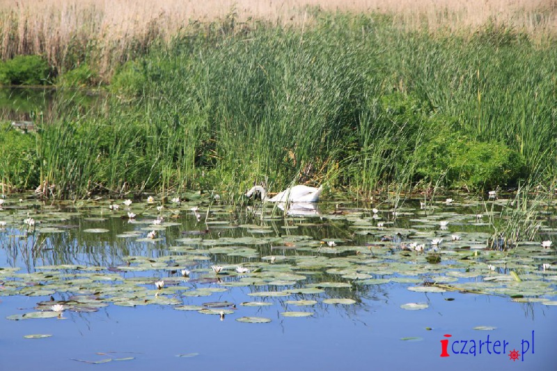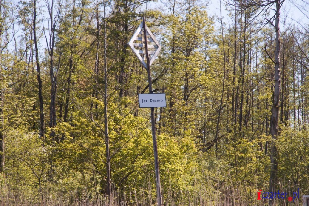 Gdybyśmy mogli spojrzeć na naszą łódź z góry, wyglądałoby na to, że płyniemy po wodnej autostradzie. Tor na wodach jeziora został sztucznie pogłębiony, gdyż średnia głębokość dwóch i pół metra mogłaby się sprawdzić jedynie w wypadku kajaków i małych jednostek. A przecież to początek Kanału Elbląskiego, którym w stronę Ostródy pływają spore wycieczkowce, przenoszone nad pochylniami jak łódeczki z kory. Szlak wyraźnie widać z góry, ponieważ jezioro pokrywa siatka pływających wysp roślinnych. Grzybienie białe, grążele żółte i grzybieńczyki wodne na otwartych wodach, salwinia pływająca i rzęsa garbata przy ujściach licznych rzek, a nawet lasy bagienne - tworzą niezapomnianej urody szatę i już możemy żałować, że poza naszą autostradą pływanie jest zabronione (na Druznie często można spotkać patrole policji wodnej), wypłynięcie poza tor wodny może skutkować koniecznością czyszczenia śruby, w skrajnych przypadkach unieruchomieniem silnika. Wokół jeziora, a zwłaszcza wyrastając wprost z wody, na części jego powierzchni rosną wyspy szuwarów. Archipelagi trzcin i brzegi Druzna zamieszkuje ponad dwieście gatunków ptaków, z których wiele będziemy mogli zobaczyć podczas naszego rejsu. Przyrodnicze bogactwo tego miejsca uzupełniają prawie tak samo liczne płazy i gady, a nawet czterdzieści gatunków ssaków, z których obecność bobra i wydry jest sprawą oczywistą, ale Druzno jako siedlisko nietoperzy? Kolejna zagadka...