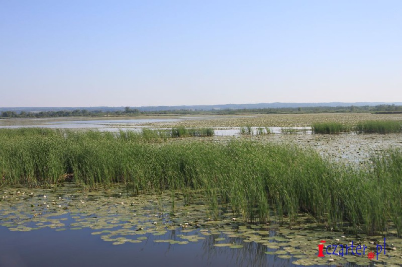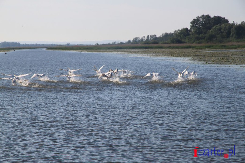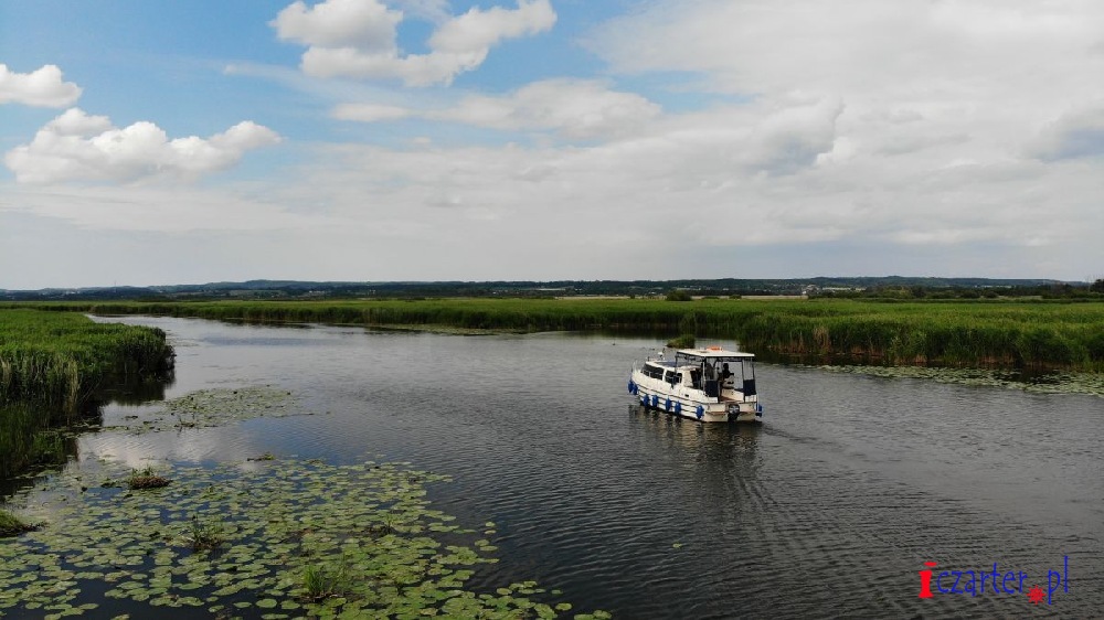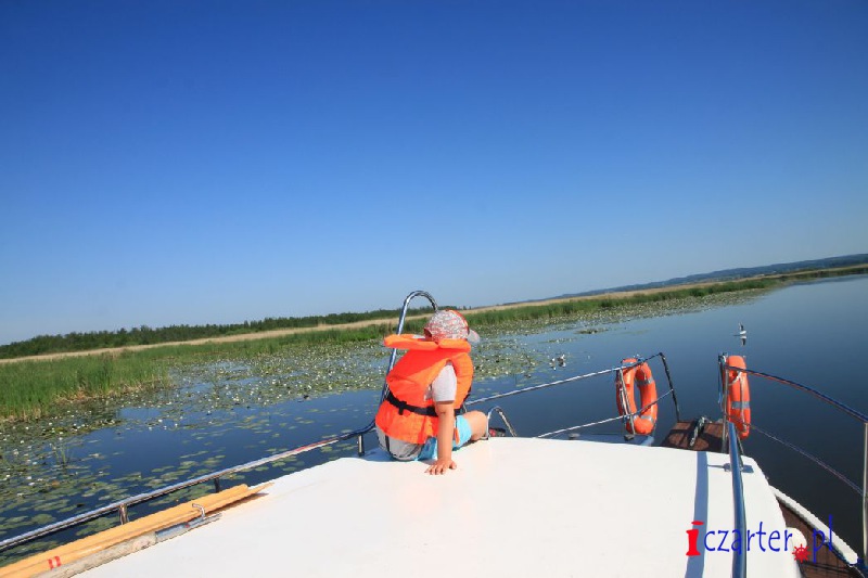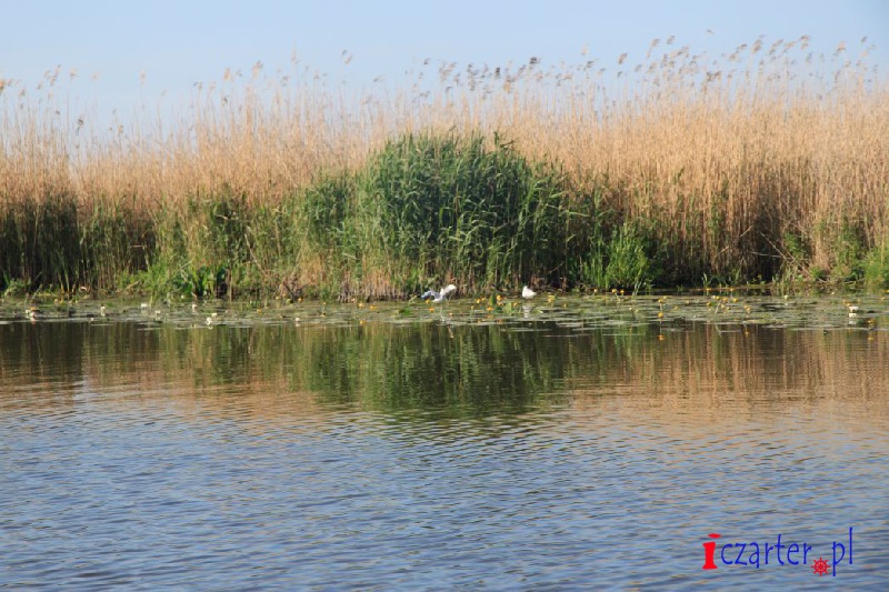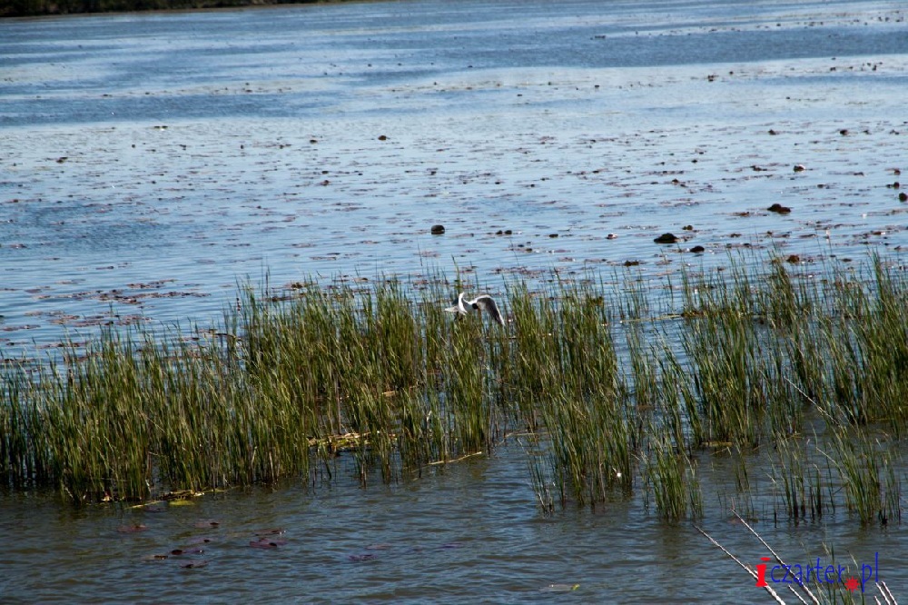 Gdybyśmy mogli spojrzeć na naszą łódź z góry, wyglądałoby na to, że płyniemy po wodnej autostradzie. Tor na wodach jeziora został sztucznie pogłębiony, gdyż średnia głębokość dwóch i pół metra mogłaby się sprawdzić jedynie w wypadku kajaków i małych jednostek. A przecież to początek Kanału Elbląskiego, którym w stronę Ostródy pływają spore wycieczkowce, przenoszone nad pochylniami jak łódeczki z kory. Szlak wyraźnie widać z góry, ponieważ jezioro pokrywa siatka pływających wysp roślinnych. Grzybienie białe, grążele żółte i grzybieńczyki wodne na otwartych wodach, salwinia pływająca i rzęsa garbata przy ujściach licznych rzek, a nawet lasy bagienne - tworzą niezapomnianej urody szatę i już możemy żałować, że poza naszą autostradą pływanie jest zabronione (na Druznie często można spotkać patrole policji wodnej), wypłynięcie poza tor wodny może skutkować koniecznością czyszczenia śruby, w skrajnych przypadkach unieruchomieniem silnika. Wokół jeziora, a zwłaszcza wyrastając wprost z wody, na części jego powierzchni rosną wyspy szuwarów. Archipelagi trzcin i brzegi Druzna zamieszkuje ponad dwieście gatunków ptaków, z których wiele będziemy mogli zobaczyć podczas naszego rejsu. Przyrodnicze bogactwo tego miejsca uzupełniają prawie tak samo liczne płazy i gady, a nawet czterdzieści gatunków ssaków, z których obecność bobra i wydry jest sprawą oczywistą, ale Druzno jako siedlisko nietoperzy? Kolejna zagadka...