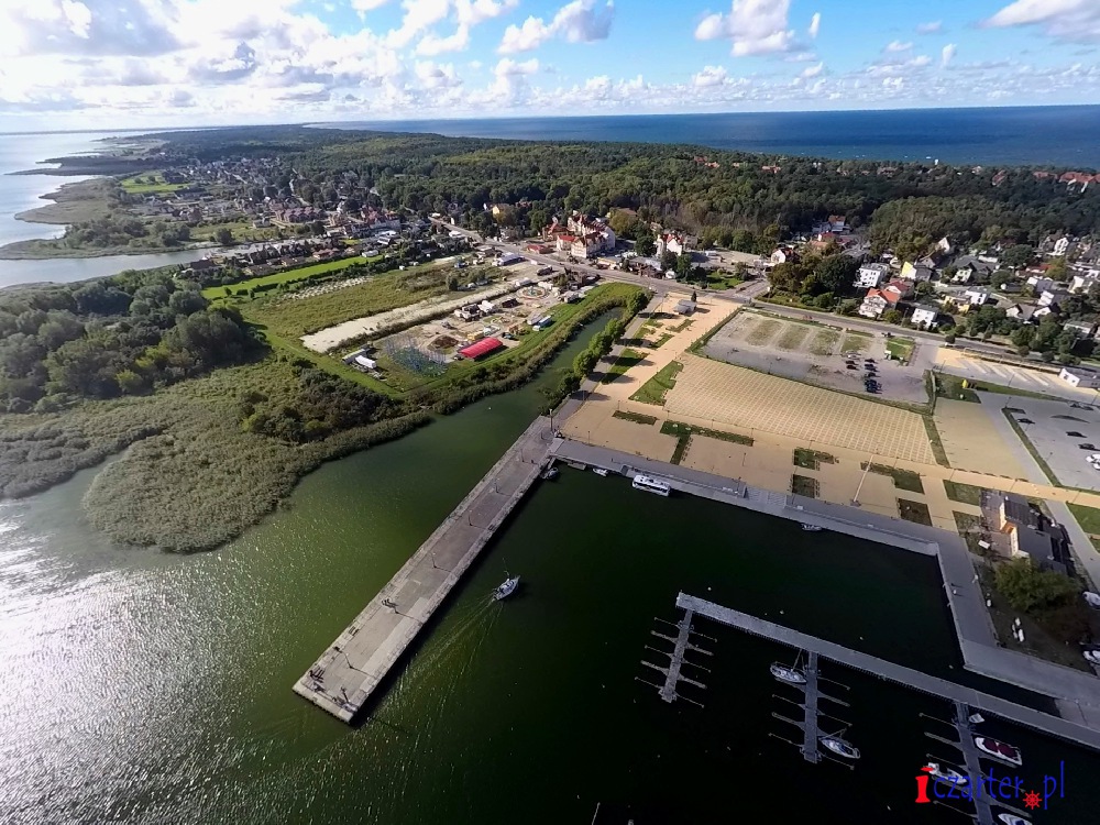 Ten nostalgiczny obrazek z belle epoque wart jest przypomnienia nie tylko dlatego, by uświadomić, jak mocno walec historii przetoczył się przez Mierzeję Wiślaną. Dziś także wpływamy do kurortu, jednej z letnich stolic Polski. Czeka na nas imponujący, przestronny port z nowoczesną mariną i pomostami cumowniczymi wychodzącymi w wody Zalewu – od razu wiadomo, że w takim miejscu żeglarzy traktuje się poważnie. Zawijają tu również statki białej floty i tramwaje wodne, choć pięćdziesięciometrowej „Flądry” nic nie przebije. Tuż za nim trochę bardziej skromnie prezentuje się starsza przystań rybacka, choć oficjalnie figuruje jako drugi basen Portu Morskiego Krynica Morska. W okolicy Zalewu w ostatnich latach wiele się zmieniło i w końcu ktoś, kto być może trafi do jedynego miasta na Mierzei Wiślanej po kilkunastu latach, odkryje w zdumieniu, że oprócz plaż na północnym brzegu istnieje jeszcze to drugie. Ważne, że Krynica chce równać do poziomu „Ostseebad Kahlberg Frische Nehrung” i całkiem nieźle jej to idzie.