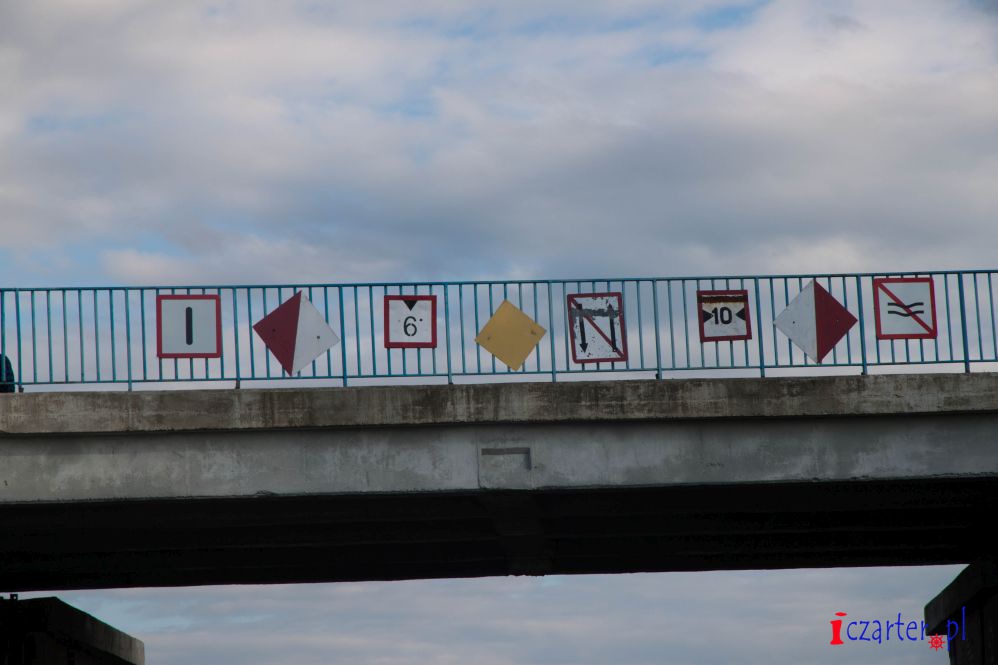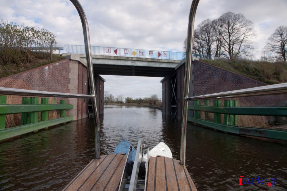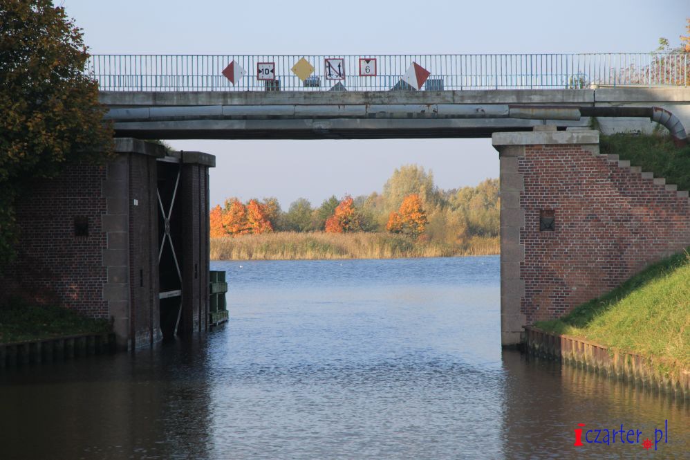 Zbliżając się do Wrót Przeciwpowodziowych w Bielniku nie należy ścinać, osiągamy pełną wysokość wejścia, tak by zobaczyć czy żadna jednostka z naprzeciwka nie nadpływa. Należy także użyć sygnału dźwiękowego, nie tylko ze względu na fakt poinformowania innych jednostek ale również wędkarzy, którzy często za wrotami okupują brzegi Kanału Jagiellońskiego. Prześwit nad mostem wynosi 9 metrów, szerokość Wrót zaś 10 m.